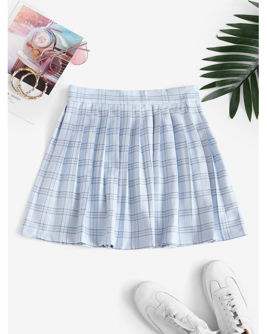 Zaful Plaid Pleated Mini Skirt In Light Blue Blue Lyst